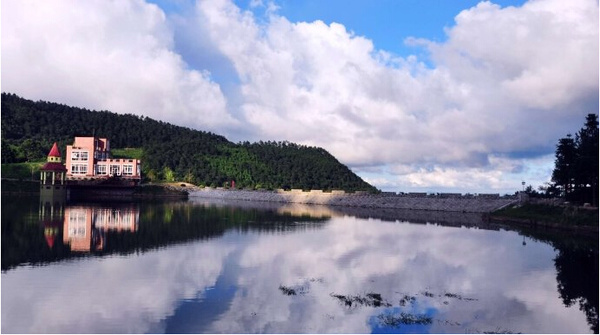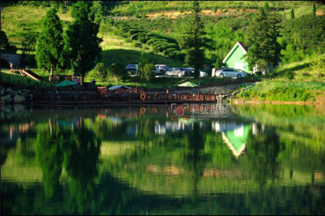黃巖西部的大寺基林場,海拔千米,遠離塵囂,東亞山莊正掩藏在這片深山里。背靠白云峰尖,陽光的溫暖、翠林的掩映、開天湖的無波澄凈,富有北歐風格的建筑,似乎,走進了只有在童話中才能一見的夢幻。